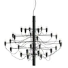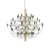 2097/50 Sarfatti lysekrone fra Flos med et ikonisk design med moderne, industrielle strejf. Den har halvtreds arme med dæmpbare lyskilder som spreder et diffust og omgivende lys. Lampen har en konstruktion i stål med arme i messing og en lang ledning for fleksibel ophængning.