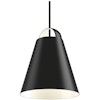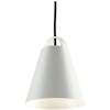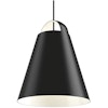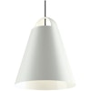 Above pendel fra Louis Poulsen. Den seneste nyhed, designet af Mads Odegård, der som en ægte minimalist stræber efter at designe med grundtanken »less is more«. Armaturet spreder et nedadrettet blødt og behageligt lys, og åbningen i toppen lyser buen dekorativt op. Helt i tråd med grundideen om, at Mads Odegård hellere skræller af en lægger til, har pendelen et tidløst design.