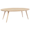FSC-certificeret Accent sofabord fra Mater. Bordet har skulpturel, håndlavet æstetik med en oval bordplade med afrundede kanter og fire smalle ben. En perfekt dekorativ ting som ændrer et uinteressant rum til et slående og visuelt interessant rum.