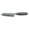 Akio santoku-kniven 13 cm fra Mareld er den kniv, du griber ud efter, når du vil arbejde tæt og præcist. Den mindre bladlængde giver stor kontrol og gør den perfekt til at hakke krydderurter, skære grøntsager eller lave detaljer i en ret. Damaskusmønsteret i stålet gør hver kniv unik og giver serien sit karakteristiske udseende, mens håndtaget i pakkawood tilfører varme og elegance. En lille santoku med en stor personlighed - skabt til alt fra hurtige hverdagsøjeblikke til kreative køkkenøjeblikke.
