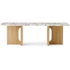 Androgyne loungebord fra Menu med et moderne, sofistikeret design med et tidløst look. Perfekt til ethvert hjem. Bordet har en spændende fod i naturligt egetræ med en raffineret, rektangulær bordplade som passer harmonisk ind i omgivelserne. Produktet er lavet af et naturligt materiale, hvilket gør hvert produkt unikt.