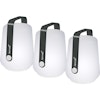 Balad lampe S 3-pak fra Fermob. En mindre variant af Lampen som gør den endnu mere fleksibel. Lamperne er perfekt til udendørs brug og giver et hyggeligt lys på de skønne sommeraftener. Efter 3,5 timers opladning får du mellem 10–14 timers batteritid. USB-C kabel på 2 meter medfølger.