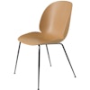 Beetle stol fra Gubi, designet af GamFratesi. Det er den elegante og tidløse stol inspireret af billens anatomi hvor skandinavisk enkelhed og funktionalitet møder italiensk ekslusivt design. Her en ny version af Beetle stolen som skiller sig fra tidligere eftersom den ikke er stoppet, men har sæde og ryglæn af plastik. Et ukomoliceret og stilrent design med et klassisk formsprog som gør at den passer i de fleste hjem og miljøer, perfekt rundt om et bord i køkkenet eller i stuen. Stolen har ben enten i messing, sort krom eller røget egetræ i flere forskellige farver på sæde/ryglæn.