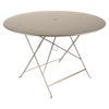 Bistrobord fra Fermob med et foldbart, kompakt design, der er ideelt til livlige udendørsarealer.
