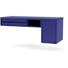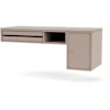 Bureau skrivebord fra Montana med et stilrent, funktionelt design perfekt til det moderne hjemmekontor. Det er væghængt og fremstillet af lakeret MDF og har to aftagelige bakker på den ene side og et rummeligt skab på den anden side. Et praktisk design der giver mere plads til benene.