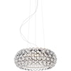 Caboche Plus Media pendel fra Foscarini med et unikt design med transparente, funklende perler i PMMA og en inderside i håndblæst glas der giver et varmt og stemningsfuldt lys. Den har et trepunktsophængningssystem med ledninger i stål. En perfekt loftslampe til stuen eller spisestuen for at give lidt ekstra lys over bordet. CE-mærket. Vælg mellem forskellige farver.