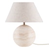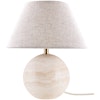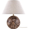 Vi præsenterer Castello 24-bordlampen fra Globen Lighting, et enestående møbel, der forener naturlig skønhed med moderne design. Denne lampe har en solid base af natursten, hvilket gør hver lampe til et unikt eksemplar. Dens elegante linnedskærm og messingaccenter tilføjer et strejf af raffinement, mens det beige tekstilkabel giver en sømløs finish.