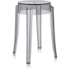 Charles Ghost taburet fra Kartell med et klassisk design i polykarbonat med en moderne fortolkning. Den har ben med en afrundet, kurvet form og et rundt sæde perfekt til at stille ved bordet når der kommer gæster.
