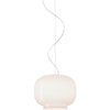Chouchin Bianco 1 pendel fra Foscarini med et stilrent, hvidt design i mundblæst glas med en afrundet form og en krave nederst for at give et direkte nedadrettet lys. Lampen er smuk i sig selv, på en række eller som en klynge i forskellige størrelser, hvilket skaber en cool effekt.