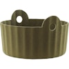Colu er en elegant og funktionel kurv designet af Baptiste Vandaele. Den kombinerer det praktiske med et stilfuldt design og er lavet af genanvendt PET-filt - et holdbart, men blødt materiale fremstillet af genbrugte plastflasker. De diskrete, integrerede håndtag gør kurven nem at flytte og ideel til opbevaring af magasiner, legetøj eller andre hverdagsting.