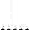 Curve 5 pendel fra Globen Lighting med et stilrent design og et nedadgående lys perfekt til placering over køkkenborde, køkkenøer, i mødelokaler og på kontorer. Den har geometriske former med trekantede lampeskærme og bløde, afrundede buer. Den er fremstillet af lakeret metal.