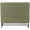 Deus kommode fra Mavis med et elegant, pænt design med bløde afrundede kanter tilføjer det lille ekstra touch til designet. perfekte til ethvert moderne eller klassisk rum. Den er fremstillet af lakeret MDF med en grøn, harmonisk farve, blødt lukkende skuffer og enkle, stilrene knopper i metal.