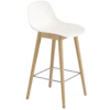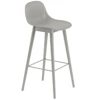 Fiber barstol fra Muuto med komfortabel rygstøtte, et sæde i træfiberkomposit og genanvendt plastik og et massivt træunderstel.