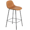 Fiber Tube Barstol med Rygstøtte 65 cm, Refine Læder Cognacfarvet / Sort