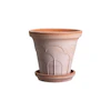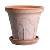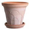 Den har et smukt relief af liljer og palmeblade og en dyb, matchende underkop, som giver optimale betingelser for planten. En tidløs og anvendelig krukke, som passer lige så godt indendørs som på altanen eller terrassen.