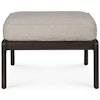 Jack fodskammel fra Ethnicraft med et elegant, eksklusivt formsprog med bløde afrundede former og højkvalitets materialer. Den har en ramme i massivt træ og en pude med et slidstærkt betræk og komfortabelt skumfyld.
