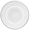 Kastehelmi tallerken fra Iittala, designet af Oiva Toikka. Denne glasserie blev designet allerede 1964 og tanken bag var at bruge dråber af glas som dekoration for at få tallerken til at blive mere levende og dekorativt. Tallerken er dekorativt på bordet og anderledes end normalt porcelæn.