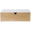 Keep-hylden blander minimalistisk design med praktisk funktionalitet. Den er fremstillet af genbrugsstål med en malet finish og en elegant egetræsskuffe og tilfører et strejf af naturlig varme til ethvert rum.