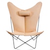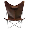 KS lænestol fra OX DANMARQ, designet af Dennis Marquart. OX DENMARQ er et dansk firma som producerer spændende designmøbler i dygtigt håndværk. KS lænestolen kommer med tilhørende pude. Konstruktionen er enkel og elegant. Læenstolen består af et sæde i læder for at læderet skal forblive blødt, have lang levealder og færre pletter, anbefales at man plejer møblerne med læderfedt mindst to gange om året. Beskyttelsesfødder monteres på benene.