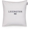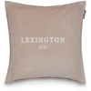 Logo Organic Cotton Velvet pudebetræk fra Lexington i blødt økologisk bomuldsfløjl. Pudebetrækket har et broderet logo på forsiden, kontrastsyninger langs kanterne og det klassiske Lexington-flag som en stilfuld detalje. En elegant og tidløs tilføjelse til dit hjems interiør.