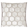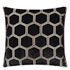 Manipur pude fra Designers Guild med et luksuriøst design i fløjl med en firkantet form, et heksagonalt mønster på forsiden og en ensfarvet bagside. Den har en fin kant på siderne. Anvend som dekoration i din seng eller som en hyggelig detalje i din lænestol eller din sofa.