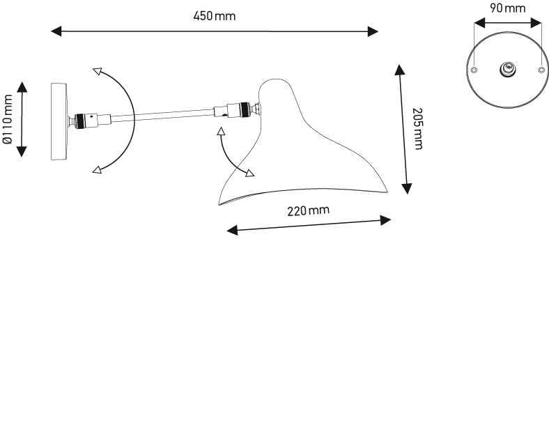 Væglampe fra DCWéditions. Væglampen har et unikt design med en afrundet, ujævn lampeskærm og en arm med en lodret justering og en vinklet lampeskærm perfekt til rum hvor du vil læse eller arbejde.