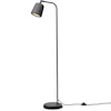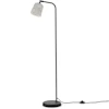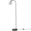 Material gulvlampe fra New Works med et enkelt design med smukke, naturlige materialer. Den har en lampefod i pulverlakeret, sort aluminium med detaljer i stål og en justérbar lampeskærm til at kontrollere lysretningen. Den har en lang, sort ledning med en fodafbryder. En perfekt detalje til ethvert rum i dit hjem.