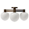 MEMOIR 120 III loftslampe fra LYFA med et moderne design med inspiration fra den klassiske lysekrone. Den har tre omhyggelig formede lampeskærme i opalglas med en lineær struktur i metal med dekorative detaljer.