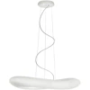 Den integrerede topLED-lyskilde udsender et blødt, jævnt lys, der giver en behagelig og indbydende glød. Den hvide polyethylen-skærm fremhæver lampens bløde form, mens den hvidmalede metalloftplade og stålkablerne giver stabilitet uden at bryde designets lethed.