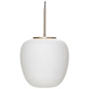 Muse pendellampe fra Hübsch med et elegant design med et messingfarvet loftfæste og en dekorativ, hvid lampeskærm i glas der giver et behageligt lys perfekt til stuen, entréen eller soveværelset.