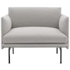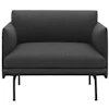 Outline lænestol fra Muuto med et klassisk, skandinavisk design med enkle, elegante linjer. Den har et dybt, komfortabelt sæde med et fyld i koldskum og slanke, sorte ben i aluminium.