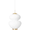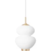 Vi præsenterer PEANUT 175-pendlen fra LYFA, et tidløst mesterværk designet af Bent Karlby i 1946. Denne klassiker fra midten af århundredet har en kurvet, mundblæst opaliseret glasskærm med elegante messingdetaljer, der giver både raffinement og charme til ethvert rum.