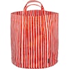 Opbevaringsenheden har det klassiske Piccolo-mønster - et levende, stribet design skabt af Vuokko Eskolin-Nurmesniemi i 1953. De malede penselstrøg giver det en grafisk og håndlavet fornemmelse. Stoffet er trykt i Helsinki og har en stærk designhistorie, som senere blev grundlaget for den ikoniske Jokapoika-skjorte.