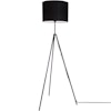 Rina gulvlampe fra By Rydéns med et klassisk design med en stor, rund lampeskærm i bomuld og terylene og tre ben i metal perfekte til ethvert hjem, uanset stil og smag.