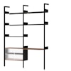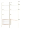 - Denne model, Rombe konfiguration D (IF2/IF6), er et reolsystem i fuld højde med to sektioner, der omfatter hylder, et skab og et skrivebord.