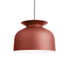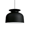 Ronde pendel fra Gubi, designet af Oliver Schick. Denne klokkeformet og moderne pendel har en ultramat lakering som giver den et udseende som minder om keramik. En unik detalje på lampen er toppen som åbner sig som en krave. Dette gør, at Ronde ikke bare har et lys som går ned. Lyset stråler fra toppens åbning og giver et blødt og behageligt lys også på ledningen og op mod loftet. Pendelen har en sort tekstilledning som er 5 meter lang, loftkop indgår. Lampes sælges uden lyskilde.