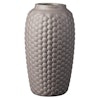 S8 Lupin-vasen fra FDB Møbler er lavet af stentøj med en glaseret finish. Vasen har en organisk form og et gentagende, geometrisk mønster, der giver den et unikt design. Fyld vasen med smukke afskårne blomster, eller lad den stå uden blomster, præcis som den er.