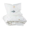 De rolige farver og dyr fra World of Sebra-kollektionen bidrager til et trygt og behageligt miljø i tremmesengen. Sættet består af et dynebetræk og et pudebetræk og leveres i en opbevaringspose af stof.