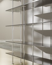 Keen Hyldesystem Med 6 Hylder 208 cm, Satinpoleret Rustfrit stål / Tonet Glas
