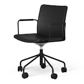 Stella Armstol med Hjul Læder Armlæn Justerbar , Sort / Sort