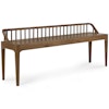 Spindle bænk fra Ethnicraft med et elegant, stilrent design i massivt træ som passer harmonisk ind i omgivelserne. Den har en dekorativ ryg med tynde, afrundede pinde og en robust ramme med let indsnævrende ben. Enkel, tidløs fremtoning perfekt til det moderne hjem.