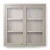 Store vægskab fra Department er et stilfuldt opbevaringselement, der løfter ethvert rum, det placeres i. Kombinationen af riflet glas og en grafisk metalramme giver skabet en luftig, moderne karakter, samtidig med at indholdet skjules på en blød og elegant måde. De justerbare hylder gør det muligt at skabe en personlig struktur - perfekt til alt fra glas og porcelæn til bøger, stilleben eller badeværelsesartikler.
