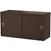 String skab med praktiske skydedøre med runde håndtag med et udsnit. En del af et hyldesystem med stabil konstruktion, uendelige muligheder med et klassisk, ikonisk design der aldrig går af mode og et klassisk, ikonisk design der aldrig går af mode. Premium kvalitet med højkvalitets materialer til at holde i generationer.