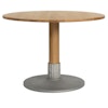 Bordet i eg fås i både lys og mørk finish og udtrykker en ren og tidløs stil, der bygger bro mellem moderne og klassisk interiør. Den afrundede form skaber en varm, inkluderende atmosfære og tilpasser sig ubesværet til en række forskellige anvendelser.