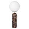 Torrano bordlampe fra Globen Lighting med et luksuriøst design med en eksklusiv lampefod i natursten, en rund lampeskærm i opalglas og detaljer i metal. Den har en lang ledning med en kontakt og et stik. En perfekt lampe at stille i vinduet for at tilføje noget ekstra hygge til rummet.