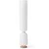 TR41 fra Tom Rossau er en gulvlampe med en skulpturel og asymmetrisk form, der fanger lyset på en blød og stemningsfuld måde. Lampen er lavet af et papir- og plastmateriale, der giver en taktil overflade og en behagelig glød. Den karakteristiske timeglasform og detaljerne i birketræ skaber en balance mellem det moderne og det naturlige, hvilket gør TR41 til et tidløst design, der fungerer lige så godt alene som i kombination med andre lamper i serien.