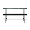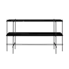TS konsolbord fra Gubi, designet af GamFratesi. Et aflastningsbord fra en anden verden! Bland den mest luksuriøse, sorte marmor med pulverlakeret stål, så har du en flot indretningsdetalje, der pryder hjemmet. Konsolbordet har to hylder, og har god opbevaringsplads til magasiner, aviser, blomster en flor lampe eller et duftlys – for både at byde dig – eller din gæst velkommen til dit hjem!