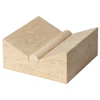 Tvara Book Stand fra Ferm Living er fremstillet af Rosso Levanto-marmor og har en enkel, geometrisk form, der holder bøger åbne.