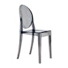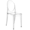 Victoria Ghost stol fra Kartell med et moderne design i polykarbonat med klassiske linjer, en afrundet rygstøtte og et geometrisk sæde.