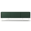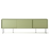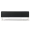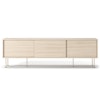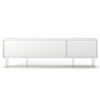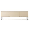 Vogue mediebænk fra Decotique med et moderne design og en luksuriøs fremtoning til alle hjem og stilarter. Den har tre skydedøre i samme farve og seks smalle ben for et eksklusivt indtryk. Tre sektioner med en flytbar hylde i hver sektion til at kunne tilpasse efter smag og behov og tre huller bagtil til ledninger og kabler. Vælg mellem forskellige farver og materialer.